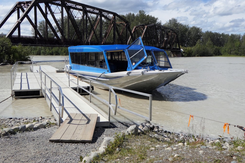 We got lucky with the weather the day we took a jet boat 60 miles up the Susitna River to a place called Devils Canyon. The boat only draws 14 inches of water which allows them to run the river without worrying about all the obstacles floating along or the always shifting gravel bars.