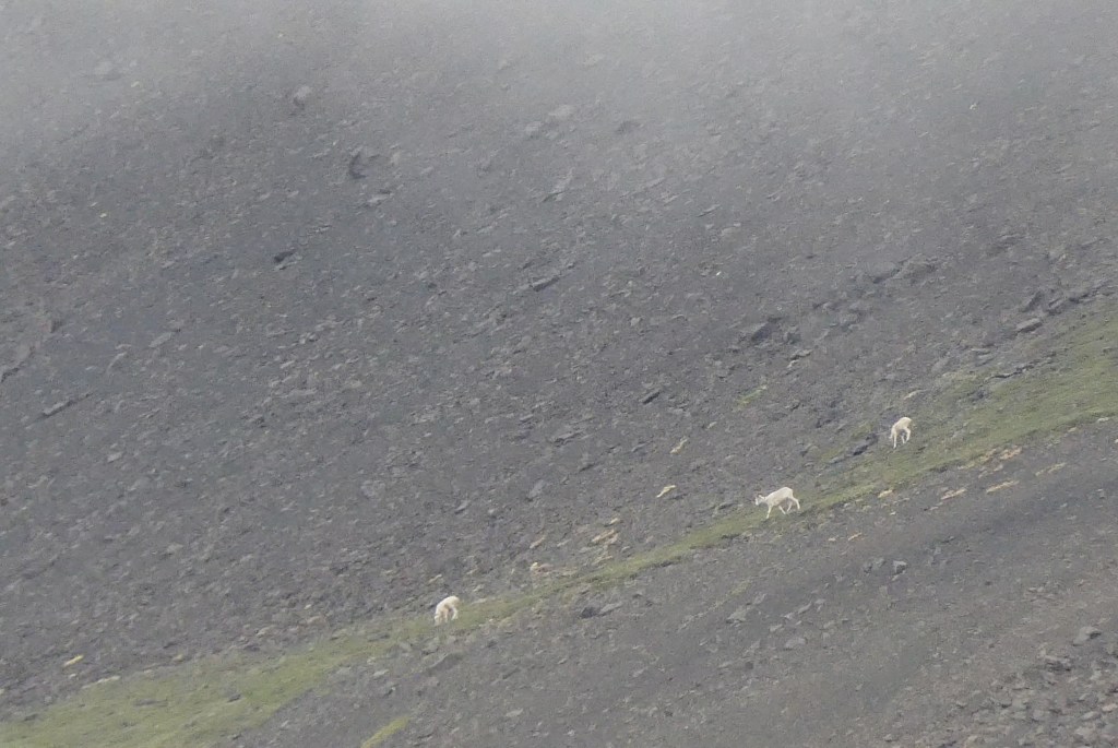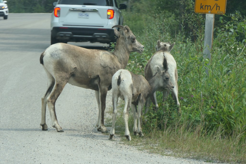 On the way, by Medicine Lake (where there was an extensive fire in 2015 that burned over 12,000 acres and caused the evacuation of more than 1,00o people in Jasper) a small herd of mountain goats were searching for salt and other minerals in the dirt of the parking lot, a common occurrence because it is lacking in their lichen diet.