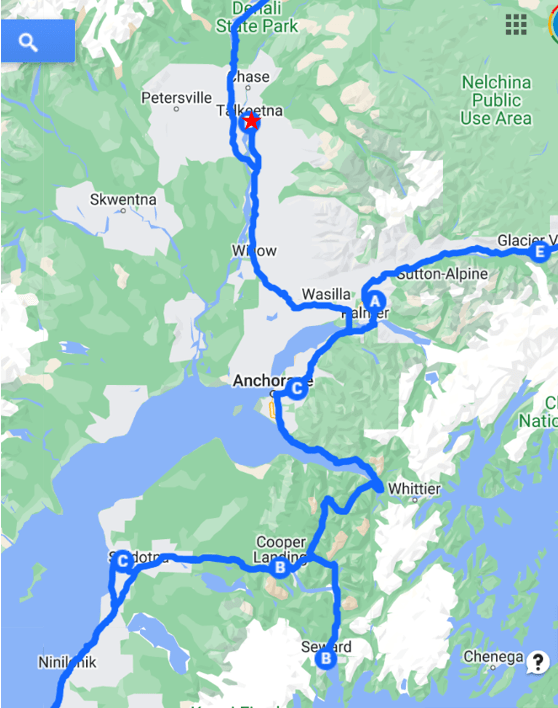We left Seward to head inland and north, through Anchorage to the small cruise ship town of Talkeetna.