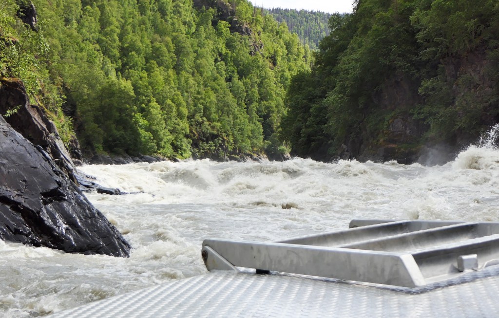 Portage Creek lies just below Hells Canyon. The canyon has never been rafted successfully as the Class 6 rapid proved to be unrunable. However on two occasions a jet boat has successfully traversed the canyon, once was by the father of our boat captain. Capt. Israel ran the boat through the Class 4/5 rapids right up to the Class 6 and we hung out there in awe of the sheer power of the water.