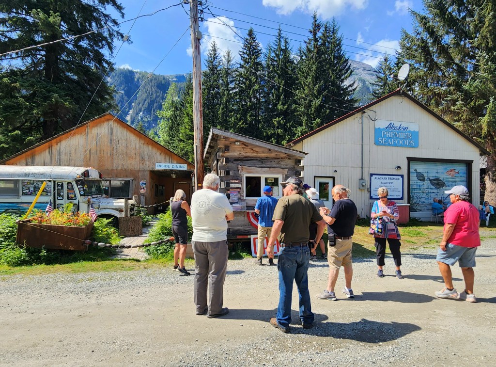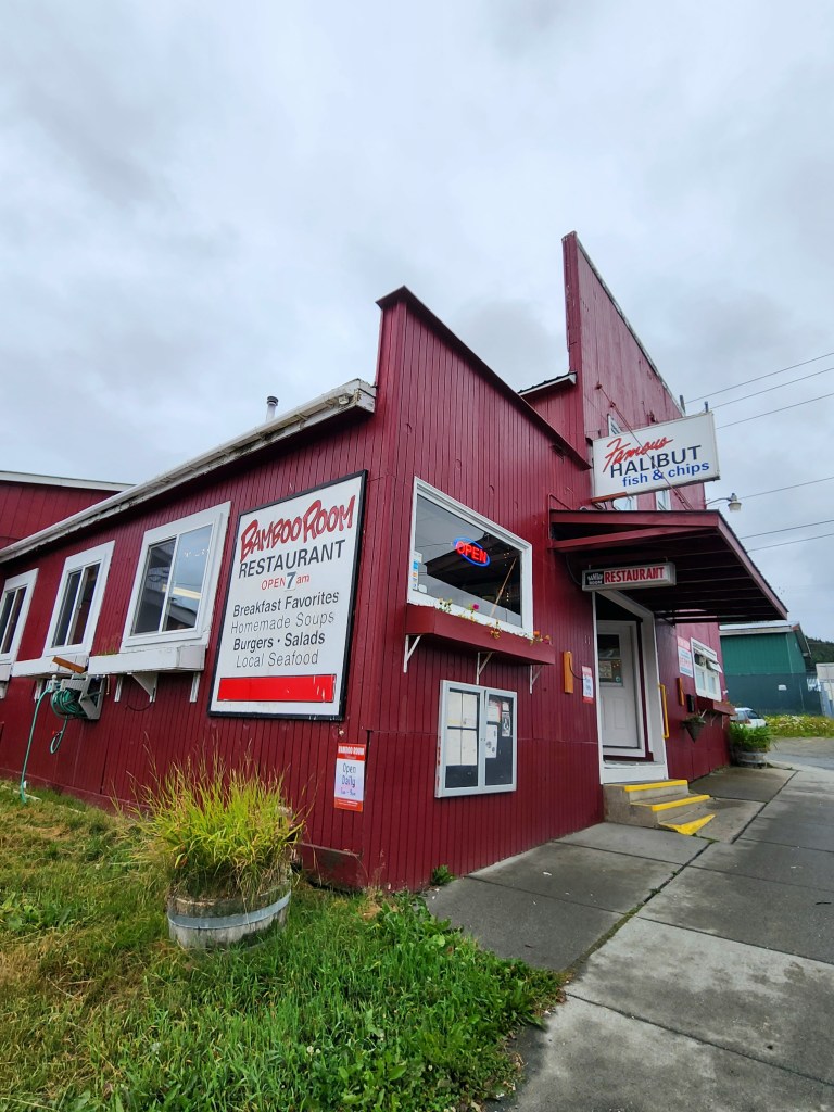Nearby Hyder calls itself the “friendliest ghost town in Alaska” and only has a population of a 100 or so folks now. The best place to eat is called the Bus that is run by a woman whose husband catches the halibut and shrimp that she fries up and sells for a few hours most days. She used to cook out of the bus, but now has a nice little shack. Popular place, and the food was truly delicious!
