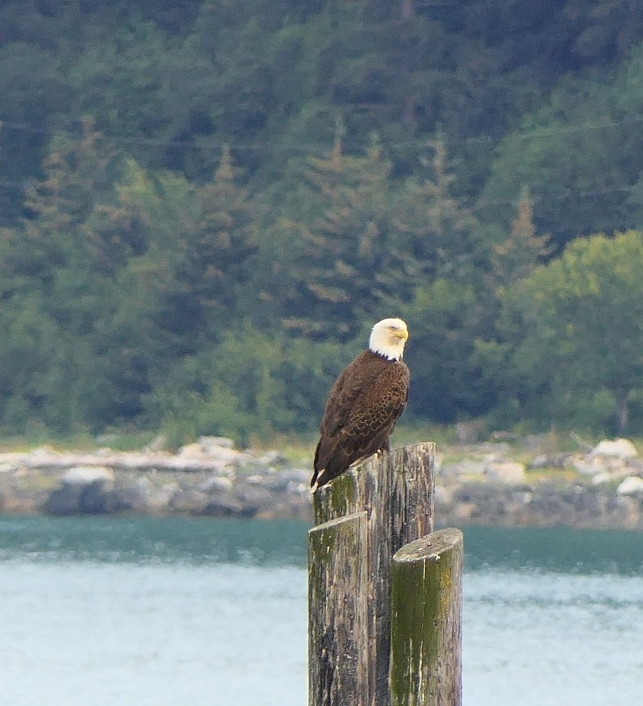 We were retracing our route that we took going north for the next few days, until we turned off back into Alaska to go to Haines. If you’ve ever gone on an Alaskan cruise, there is usually a stop either in Haines or across the fjord (they call them canals here) in Skagway, both are “around the corner” from Glacier Bay National Park. Haines was gorgeous and we would have stayed longer if there had been any openings beyond the week we reserved at our campground right on the fjord.