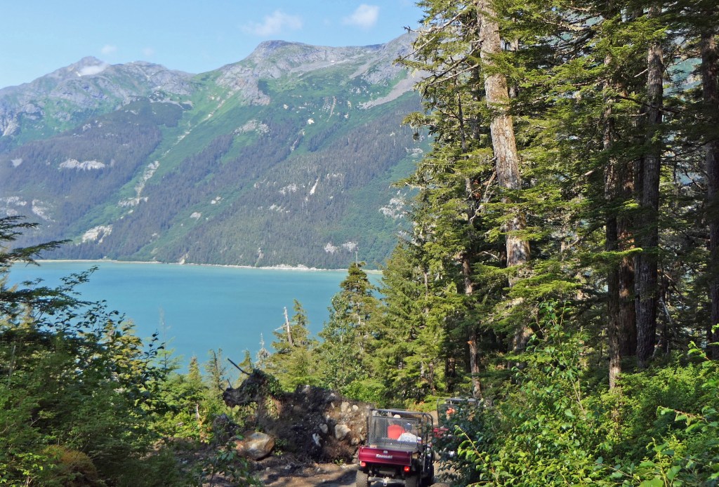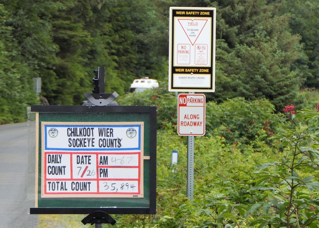 There is a salmon run at the head of the fjord that attracts lots of anglers and a fish weir that F&G uses to do the salmon counts. Bear scat is all over the road. We’ve seen bears, but too fast to get any pictures:(