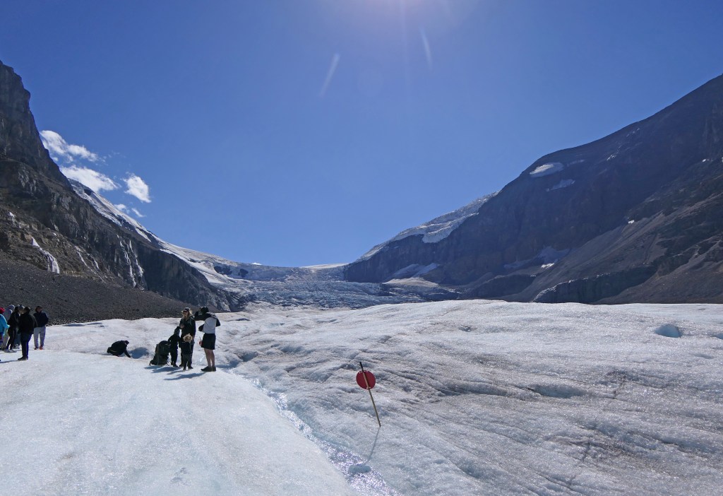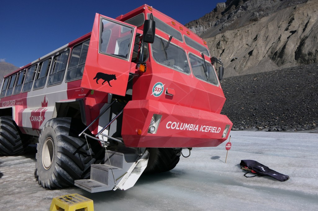 We took a trip up onto the Athabasca Glacier on one of only 30 ice buggies like these in the world. You can walk on the glacier and even drink glacier water 🙂 The incredible blue color of a glacier comes from the absorption of all of the light spectrum except for the blues, the same as glacially-fed lakes.