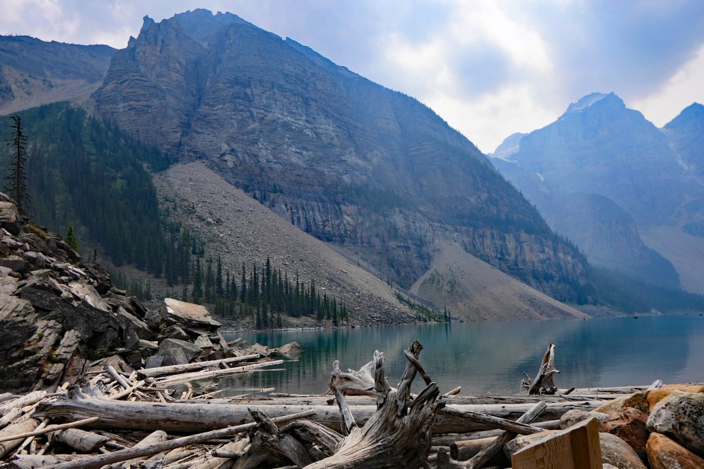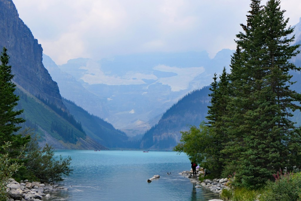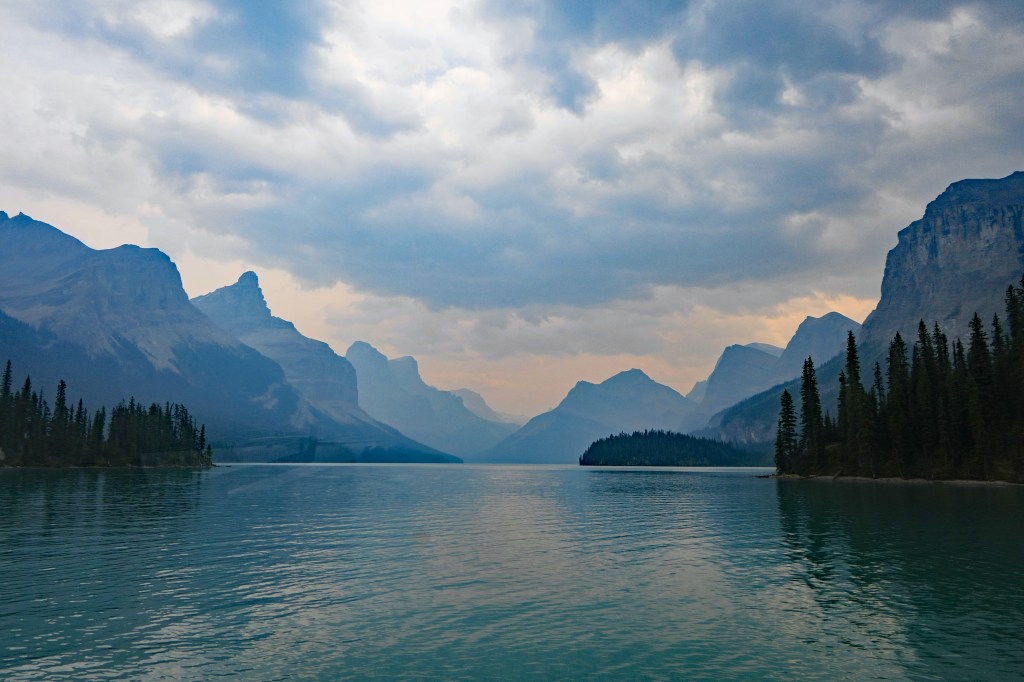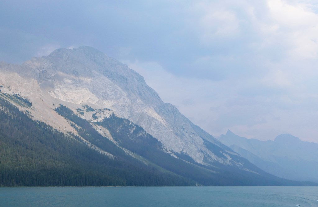 When we got to Maligne Lake, the boat trip up the lake allowed for some fantastic views, if a bit smoky in some directions.