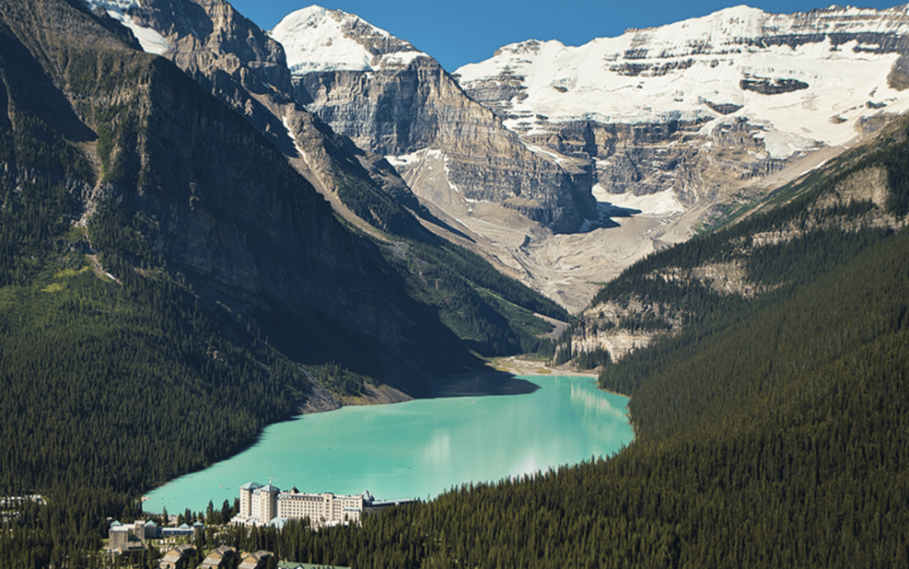 This view of Lake Louise (which is north of Banff) was difficult to capture with the crush of people. The Fairmont Chateau Hotel there attracts a lot of the folks. It is the subject of what probably are the most recognized photos of the lake, but I didn’t have the patience to try to capture it. This photo is from the hotel website. The shot that follows it was what I was able to get.