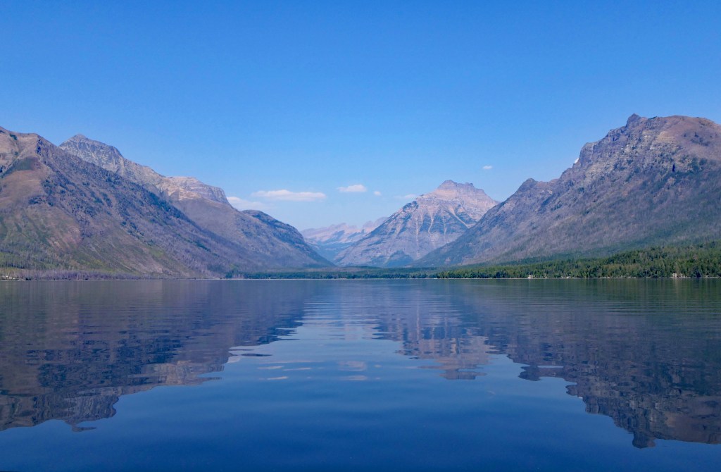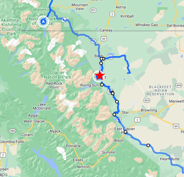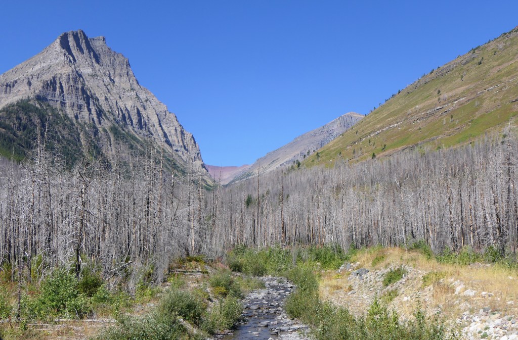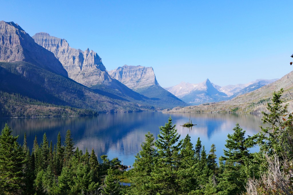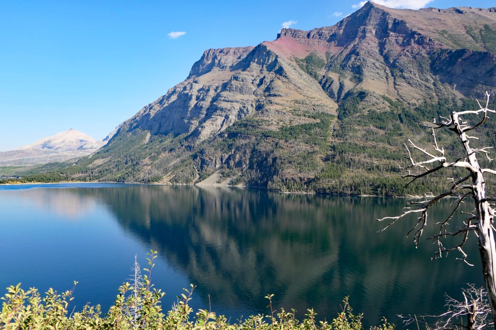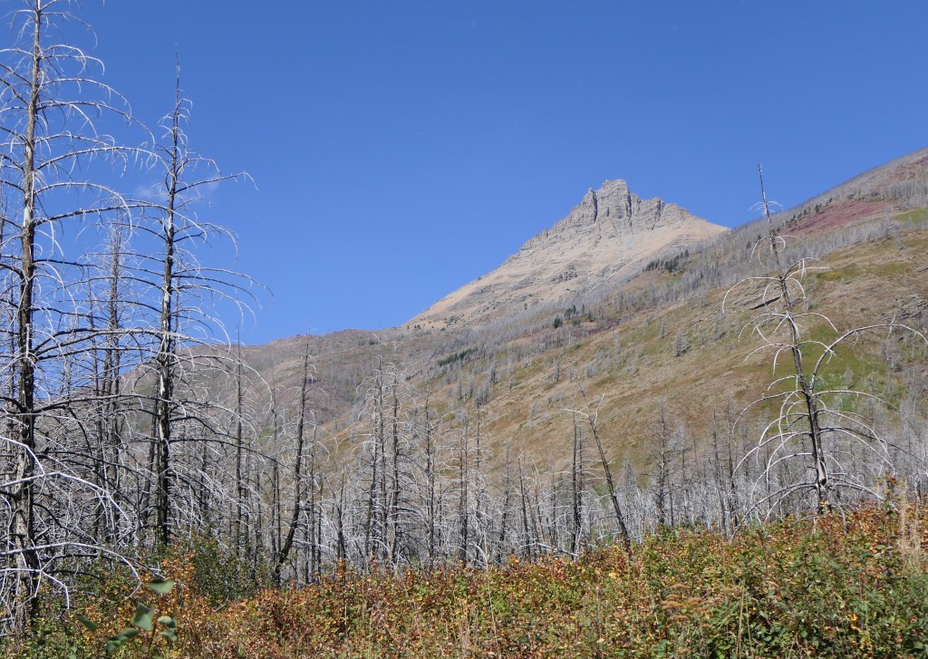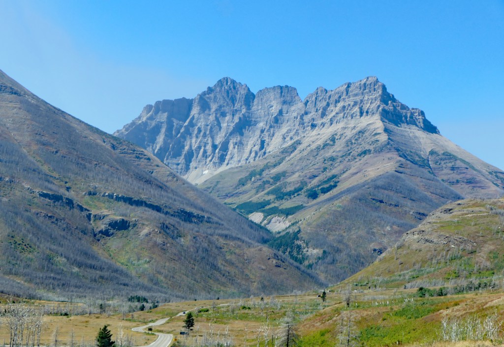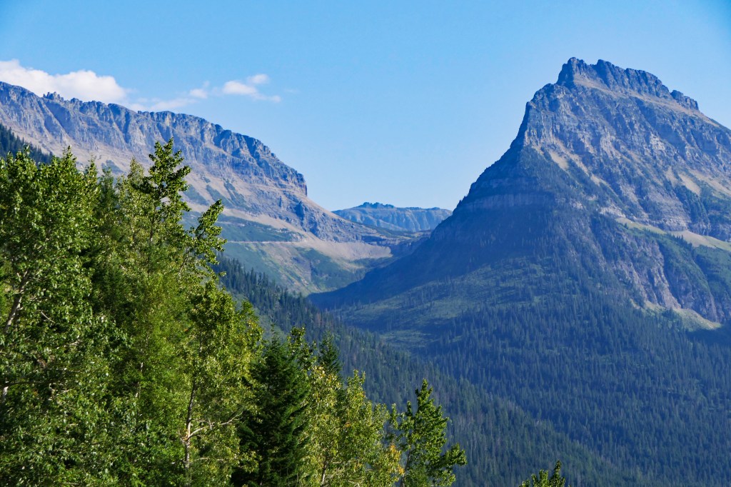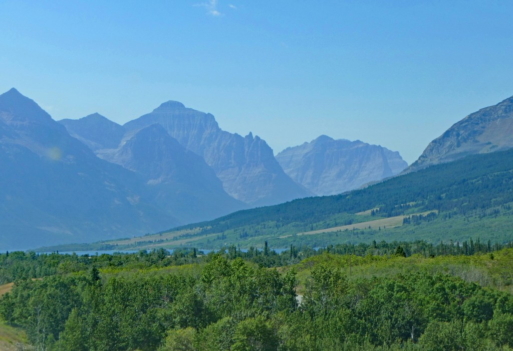 Glacier is another beautiful place, located less than 100 miles by road south of Waterton Lakes NP in Canada. It is adjacent to Waterton, and together they are designated as an International Peace Park. There was still a smoky haze from the British Columbia fires when we drove down and into Glacier.