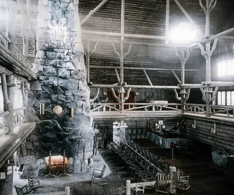 Old Faithful Inn is also registered on the National Register. It was constructed beginning in 1902, and is still a majestic space. The first photo is from early in the 1900’s, the second is one I took.