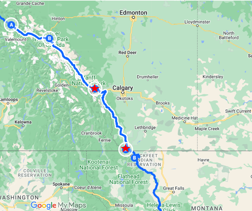 We left Jasper National Park in the Canadian Rockies and drove the entire length of the Columbia Icefields Parkway to Banff, and then on to Waterton Lakes National Park (which is designated as an international Peace Park as it is contiguous with Glacier National Park in Montana).
