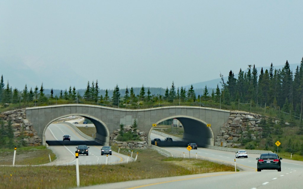 One very cool thing is that Parks Canada built these wildlife overpasses over the highway between Banff and Lake Louise so animals could resume their normal migration and home range patterns. Studies have shown that they work, and because of the high fences along the edge of the highway funneling to the overpasses, accidents between cars and wildlife have decreased substantially.