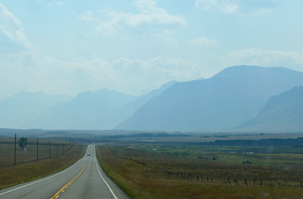 Less than 100 miles to the south of Banff lies Waterton Lakes National Park. The drive there was really interesting as the road went out into the plains, then back in to the Rockies. The smoke from the wildfires was still present.