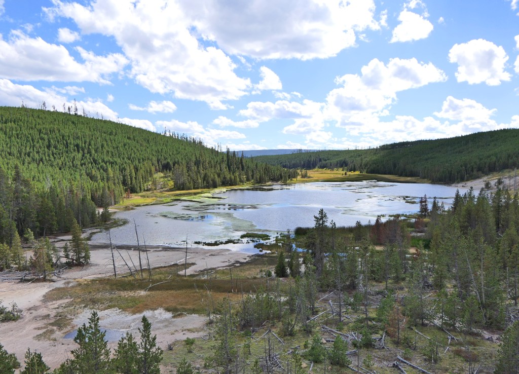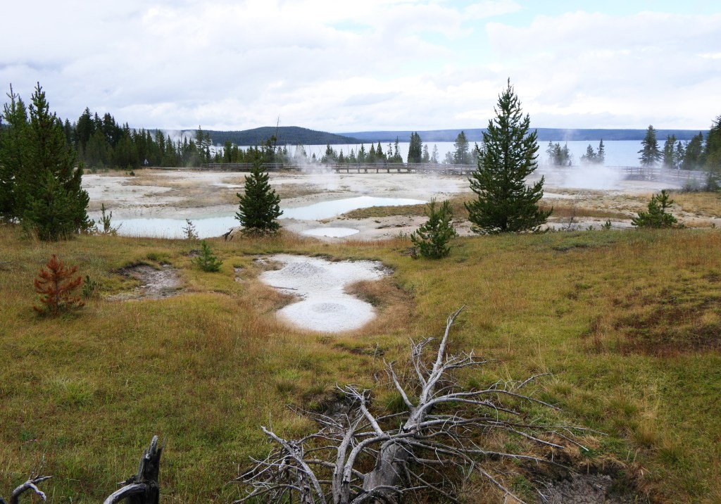 We went from Fishing Bridge (which is now fish watching bridge, no fishing is allowed because the introduction of lake trout has devastated the native cutthroat trout population) down by Yellowstone Lake and the Lake Yellowstone Hotel to the West Thumb Geyser Basin.