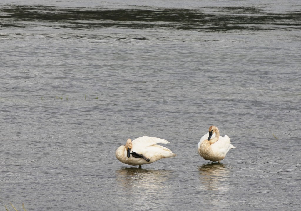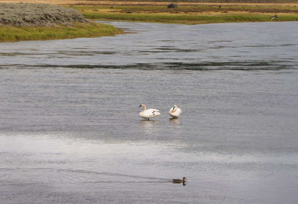 Trumpeter swans (a species of concern) on the Yellowstone River in Hayden Valley.