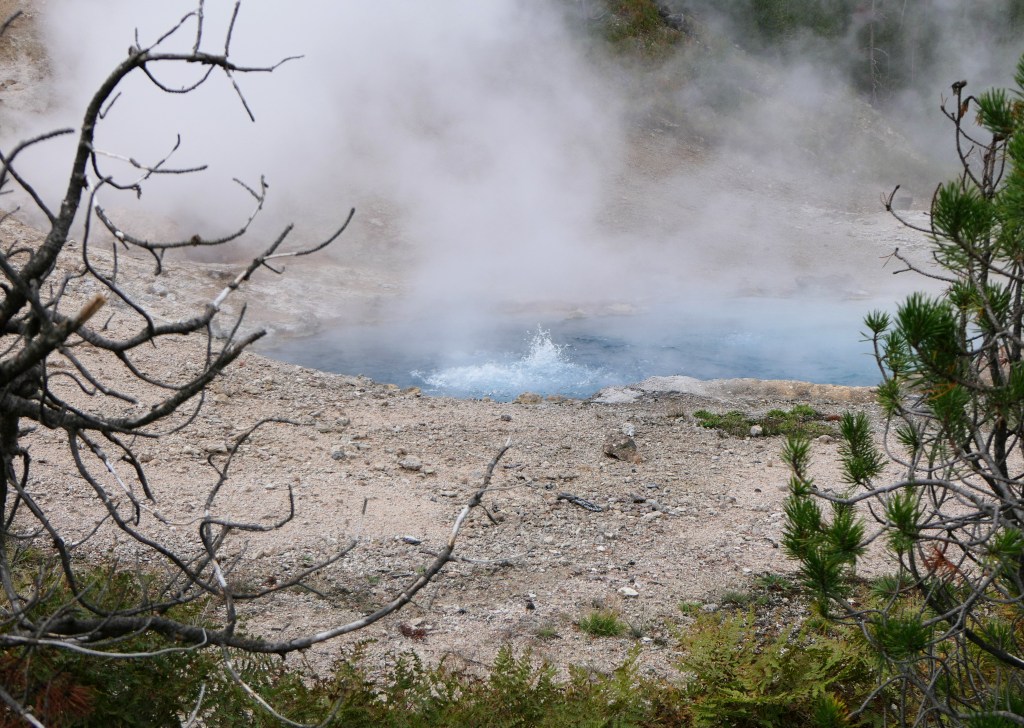 The special thing about West Thumb is the amazing proximity of the thermal features to the lake shore, and there are some within the lake itself. There are four types of thermal features in Yellowstone, geysers (like Old Faithful), mudpots, fumaroles, and hot springs. The last two are abundant at West Thumb.
