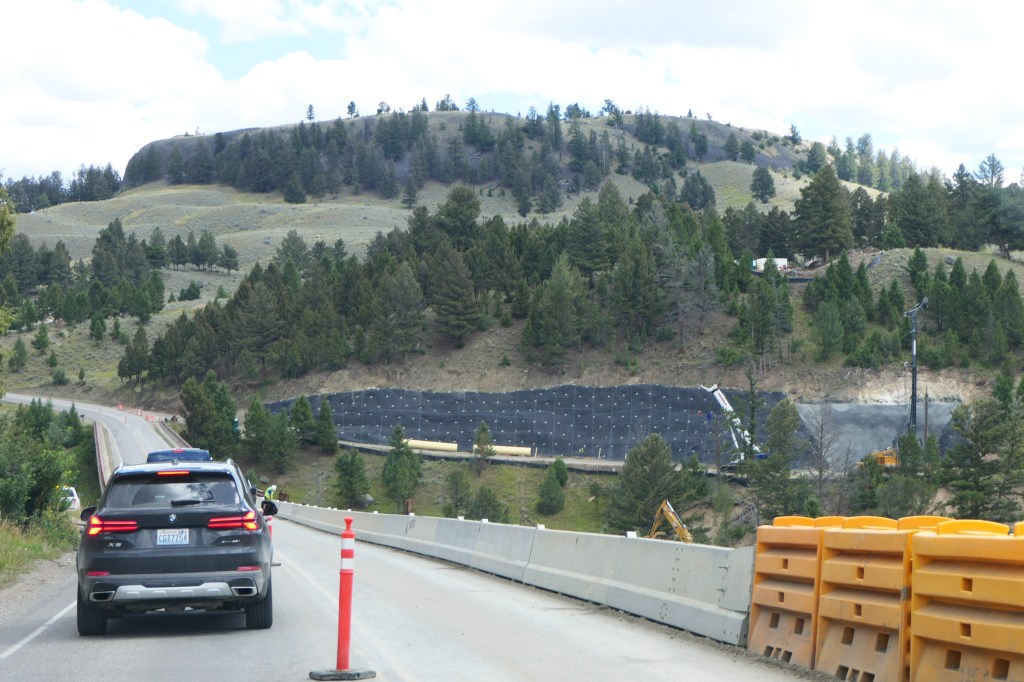 From there we headed up in search of the bison herd in Lamar Valley. On the way we passed one of the spots where the flood in June of 2022 took out the park road. Within a day of the flood there was a $10 M appropriation committed for repairs to roads and infrastructure, and within a month services were restored enough for park employees to gain access to their homes and offices at Mammoth, however the Mammoth Hotel still has not reopened.
