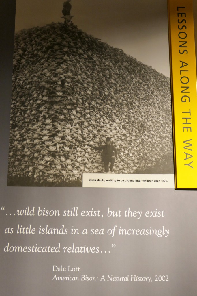 This picture in the visitors center of a mountain of bison skulls struck a cord with me. The bison were slaughtered to control the Native American people, because without the bison, their way of life and culture were forever altered.