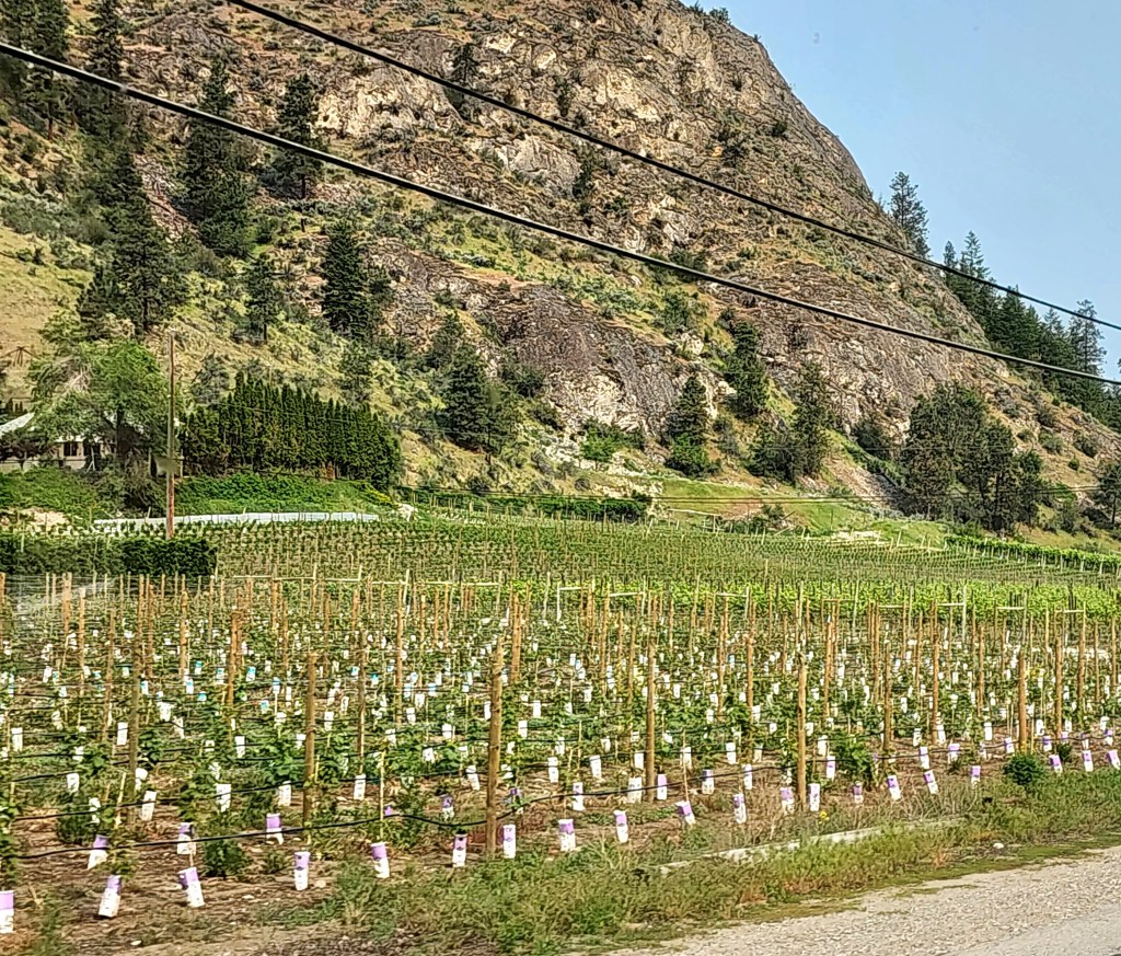 As we started into BC, there were still miles of fruit trees, but also a huge number of vineyards. A lot of them looked newly planted on old orchard land.