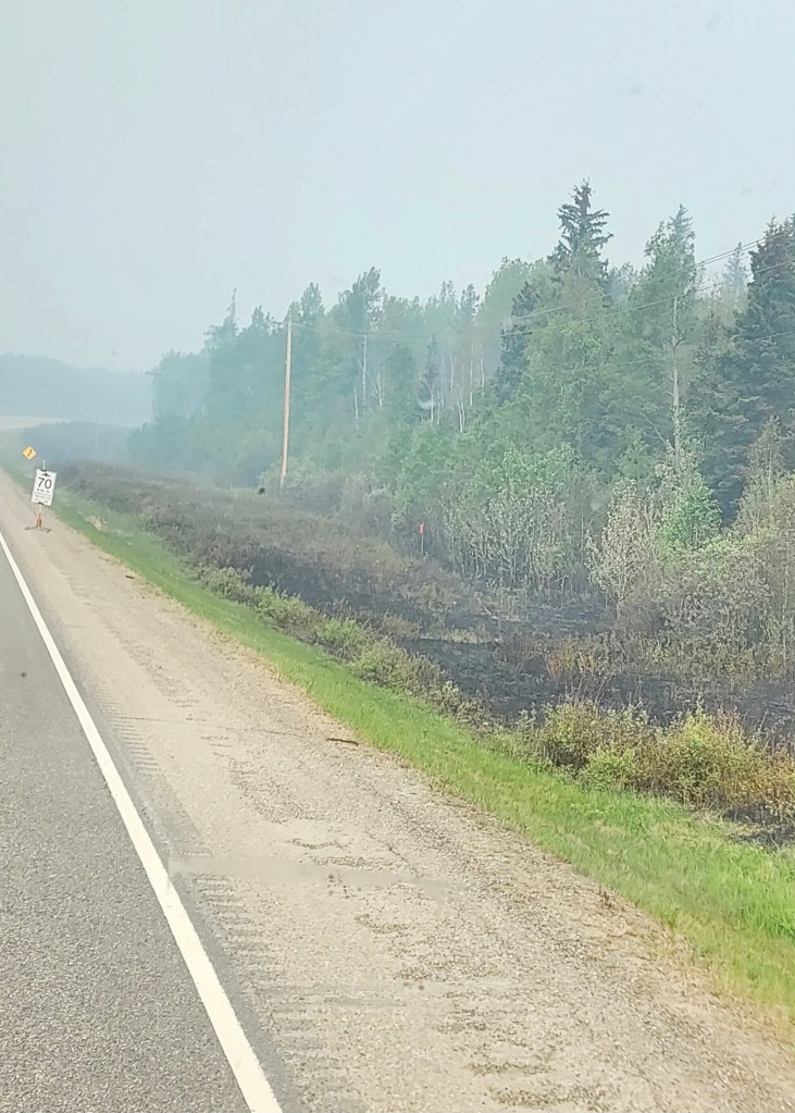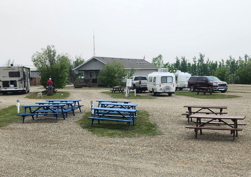 That day we saw 4 black bears by the side of the road, but no ability to stop. The smoke picked up again shortly after I took this picture and stayed with us until Dawson Creek at our campground (remember, there are no clouds, this is all smoke). We had to keep the RV closed up for the smoke.