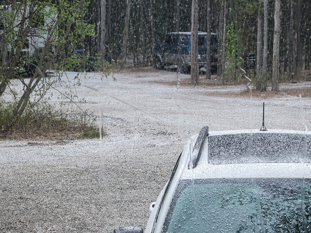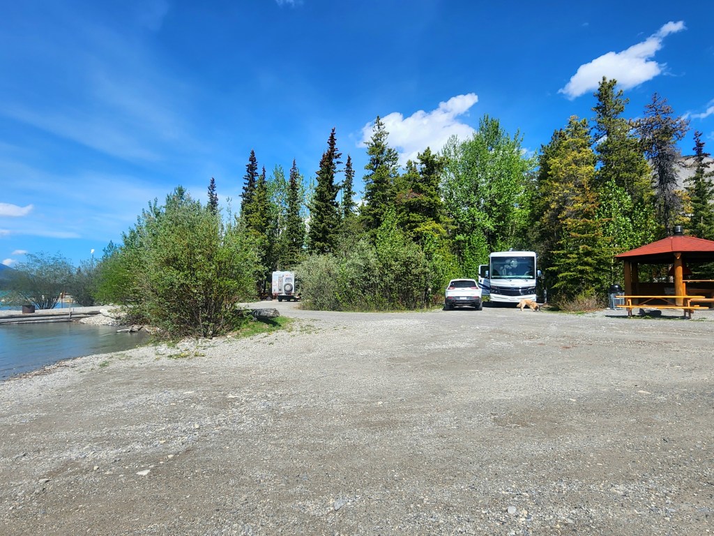 It turns out that there was record flooding in Dawson City (our next planned stop) due to ice jams previously followed by melting snow and record rain on the Yukon River, so the border crossing and road (which requires a short ferry ride across the river) are shut down.