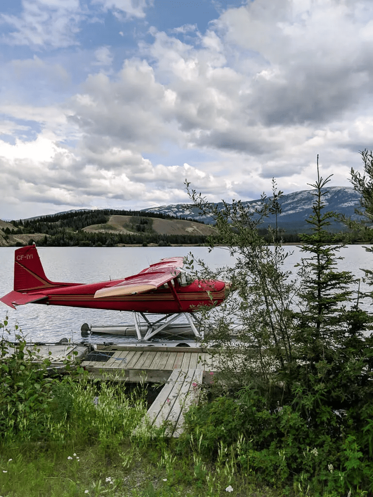 The lake below the canyon serves as a floatplane base, but being so early in the season few planes were there. The lake is formed by a hydroelectric dam with the longest wooden fish ladder in all of Canada. By the time the salmon get there they have traveled over 2,000 miles.