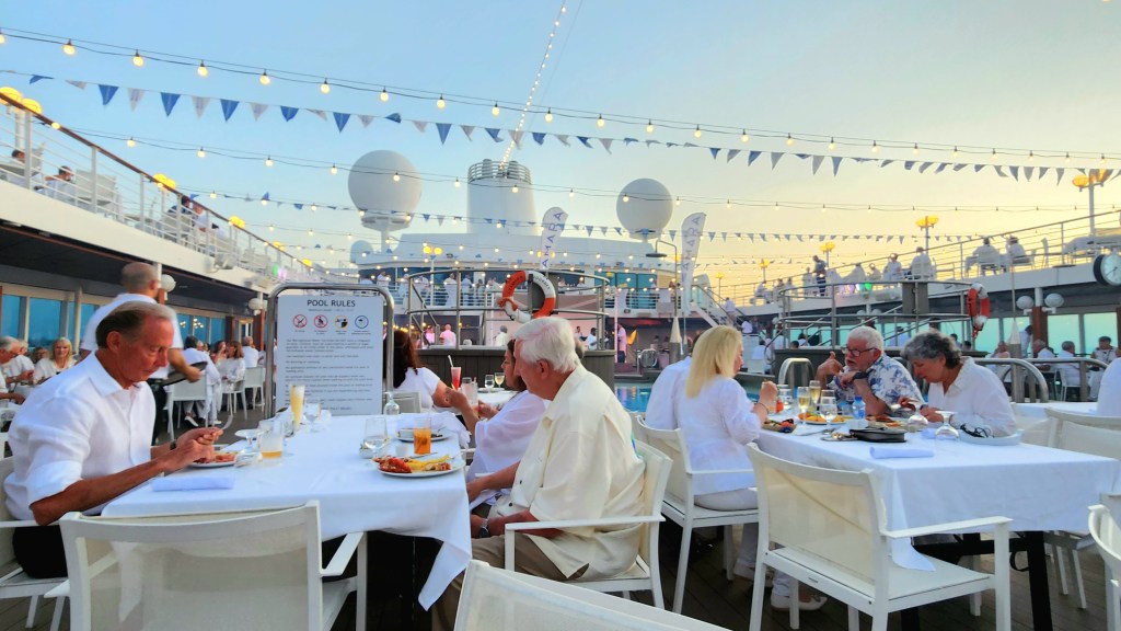 That night we had the White Night Party on the ship where everyone dresses all in white and the ship’s officers serve dinner on the deck followed by some great local entertainment.
