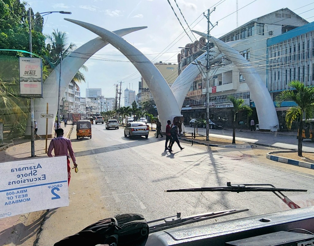 From Zanzibar we headed up the coast to Mombasa in Kenya. We did a great tour in Mombasa, starting with the famous tusk arches.