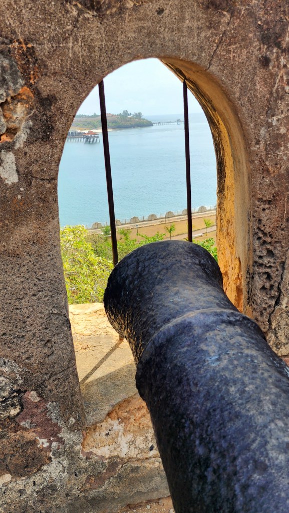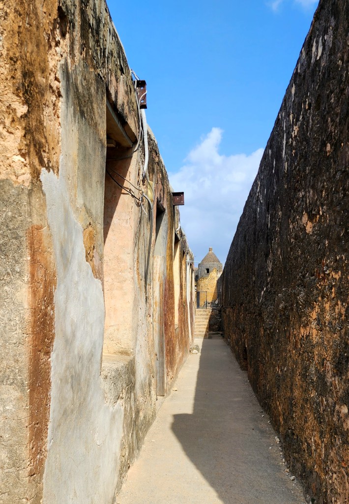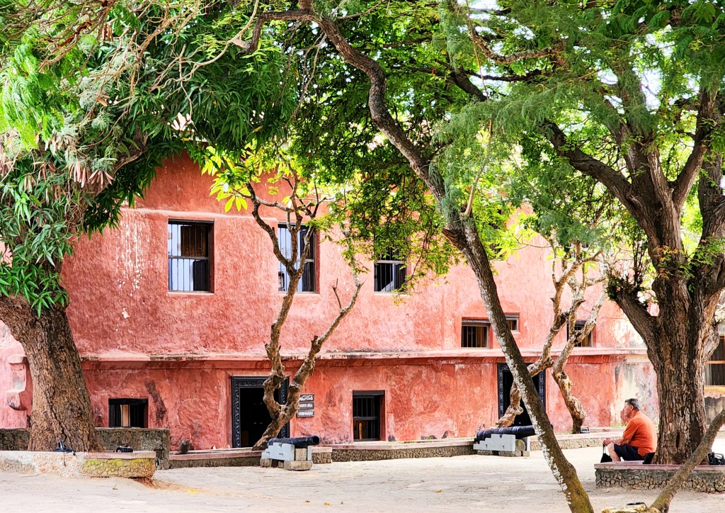 Then we had a tour of Fort Jesus. It was built between 1593 and 1596 by order of the Spanish king, who also reigned as king of Portugal and the Algarves, to guard the Old Port of Mombasa .