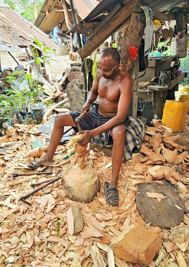 After the fort we visited a woodworking commune on the outskirts of Mombasa. The commune employs 3,000 people who carve beautiful objects from ebony, rosewood, and other woods. As we walked through the workshops the people were so welcoming, all greeting us with “Jambo!”