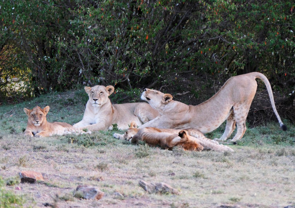 As sunset approached, guess what we found? More lions 🙂 This time it was females and cubs.