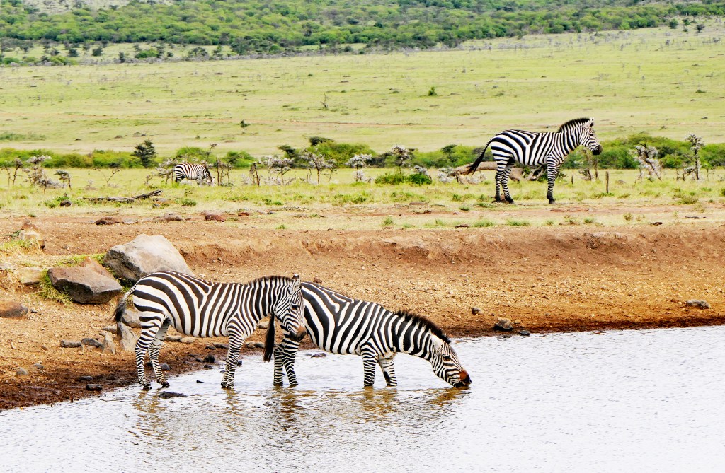 Next up, a herd of zebras at a watering hole.