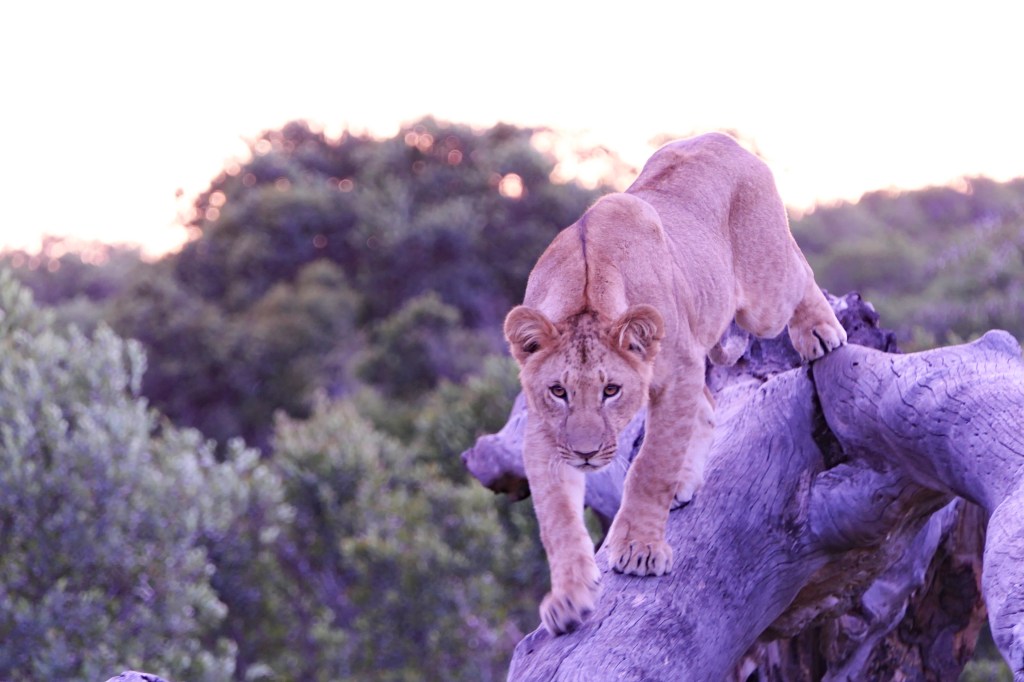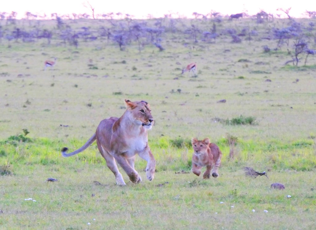 A cub determined to follow the lioness.