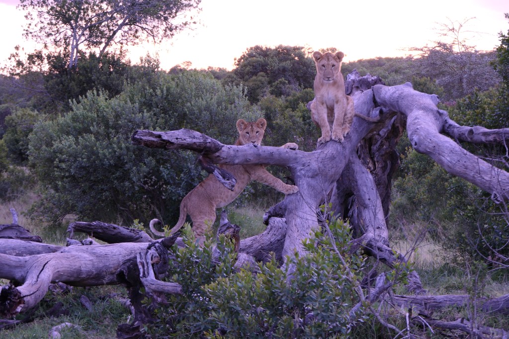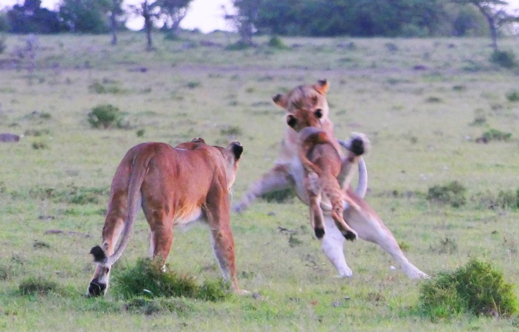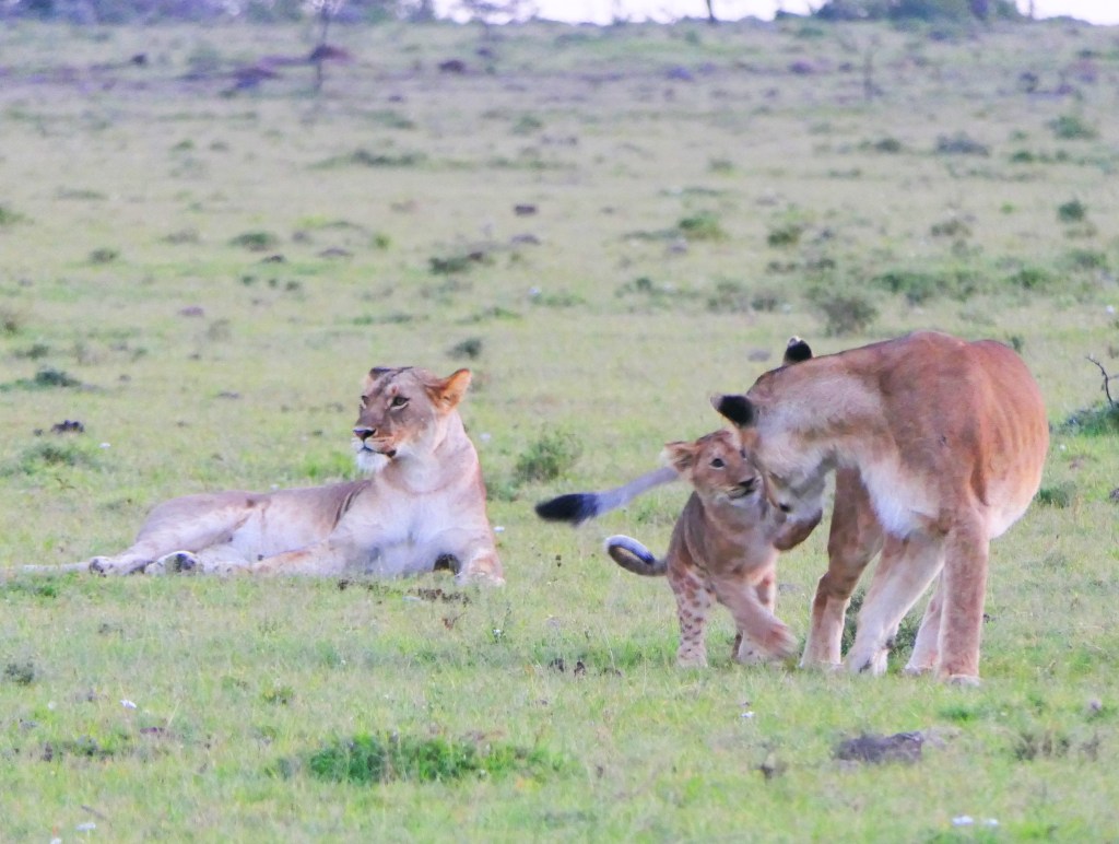 The next morning we once again headed out very early. As the sun was just coming up, we came upon a different group of two lioness and cubs. We watched for awhile because the adults were playing with the cubs.