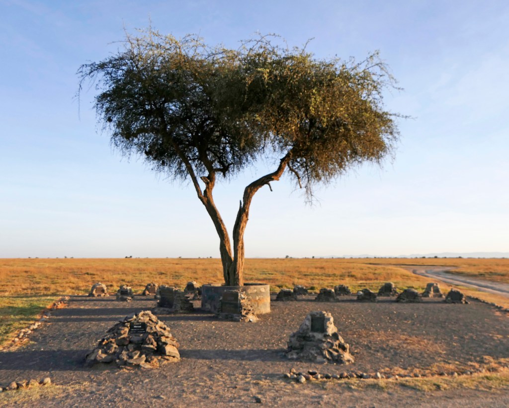 It was time to keep our appointment with the last two remaining Northern White rhinos in the world, Najin and Fatu, both of which are female. But first, a visit to the memorial and graveyard for the Northern White Rhinos that have died, both from poaching and natural causes.