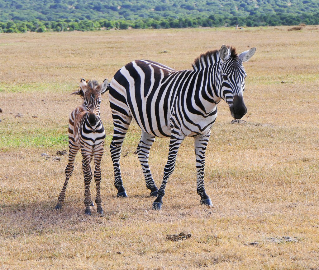 A zebra mom and baby.